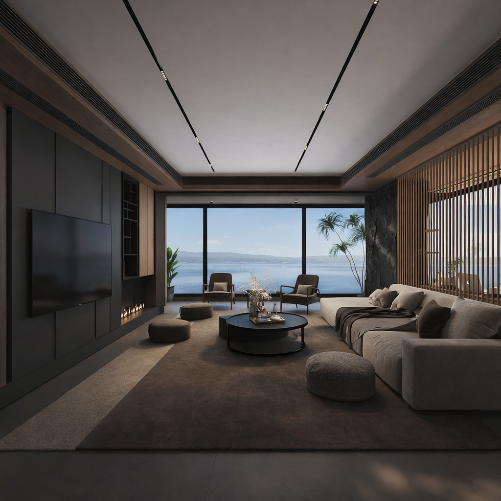 Doğal malzemelerin rafine işçilikle buluştuğu bu özel proje, çağdaş konforu zamansız bir yaşam estetiğiyle bir araya getiriyor. Özenle seçilen ahşap yüzeyler, özel üretim mobilyalar ve dengeli aydınlatma kurgusu mekâna sofistike bir derinlik kazandırırken; geniş açıklıklar ve doğal ışık, iç mekânda ferah ve güçlü bir atmosfer oluşturuyor. Her detayda kaliteyi hissettiren bu tasarım, ayrıcalıklı ve yüksek standartlı bir yaşam anlayışını yansıtıyor.