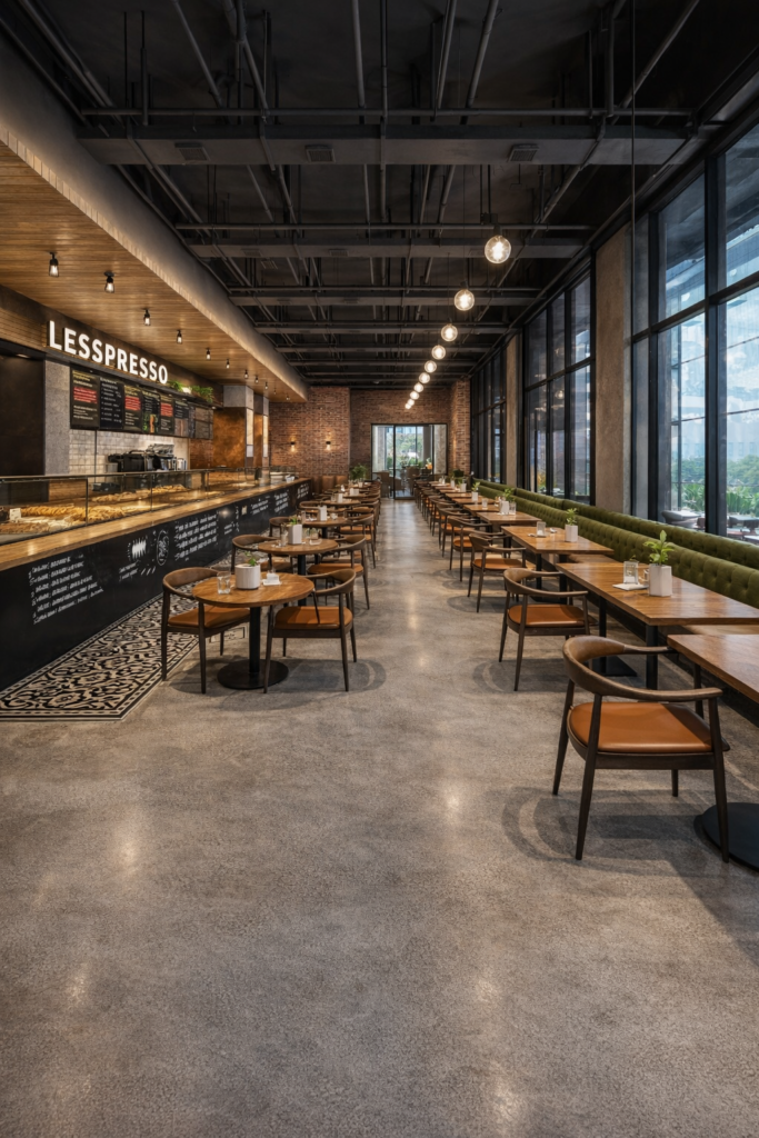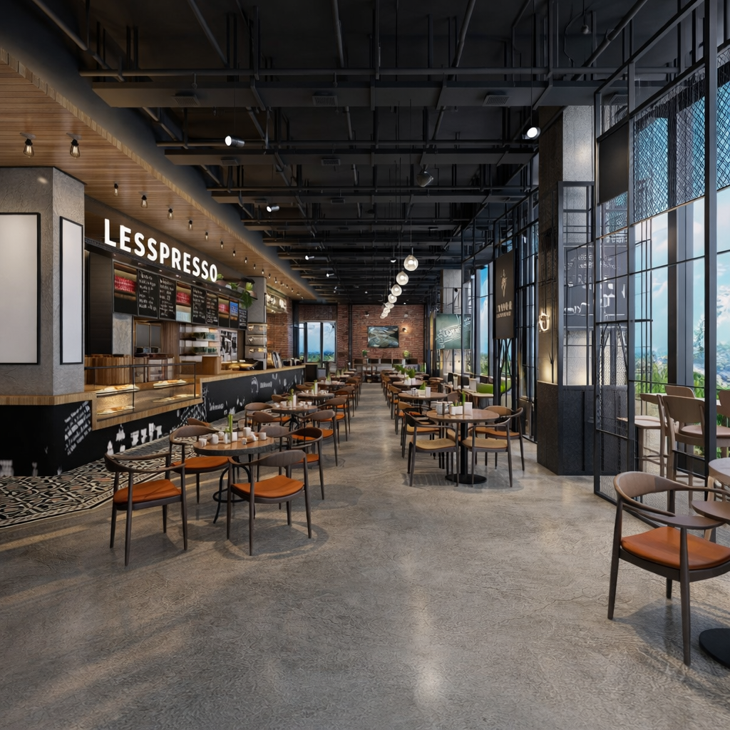 Çağdaş kentsel yaşamın dinamiklerini yansıtan, sofistike bir kafe deneyimi olarak tasarlandı. Endüstriyel strüktürün güçlü ifadesi; doğal ahşap dokular, metal detaylar ve kontrollü aydınlatma kurgusuyla dengelenerek modern, prestijli ve davetkâr bir atmosfer oluşturuyor. Mekân, hem sosyal etkileşimi hem de konforu odağına alan planlamasıyla markanın seçkin kimliğini mimari bir dile dönüştürüyor.