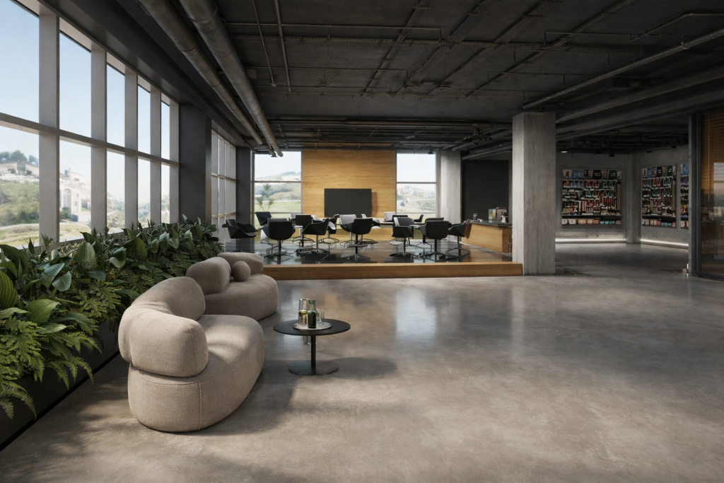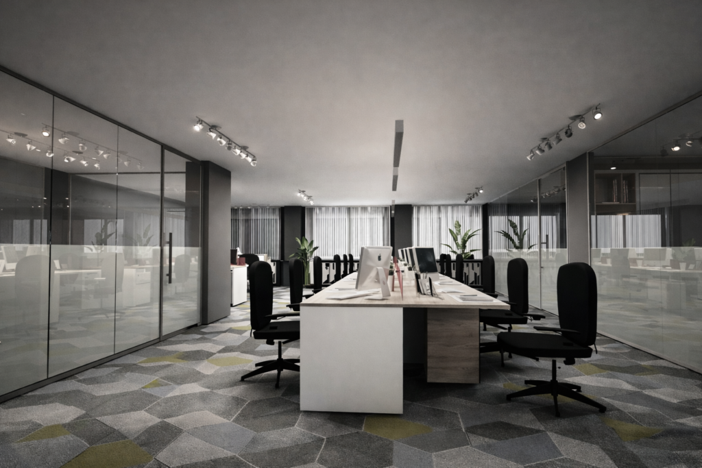 Modern malzeme seçimleri ve yalın detaylarla şekillenen tasarım, kullanıcı deneyimini artırmayı hedefleyen fonksiyonel ve zamansız bir ofis ortamı sunmaktadır.