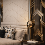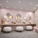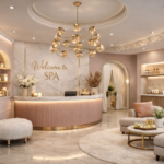 Mekânın tamamında yumuşak tonlar, doğal taş dokular ve altın detaylarla rahatlatıcı bir bütünlük oluşturuldu.