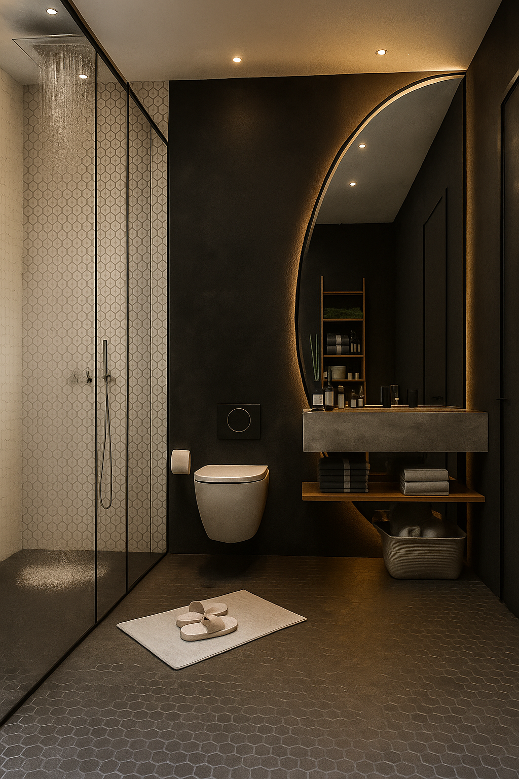 Işık, malzeme ve oran dengesiyle SPA atmosferi güçlü ama abartısız bir şekilde vurgulandı.