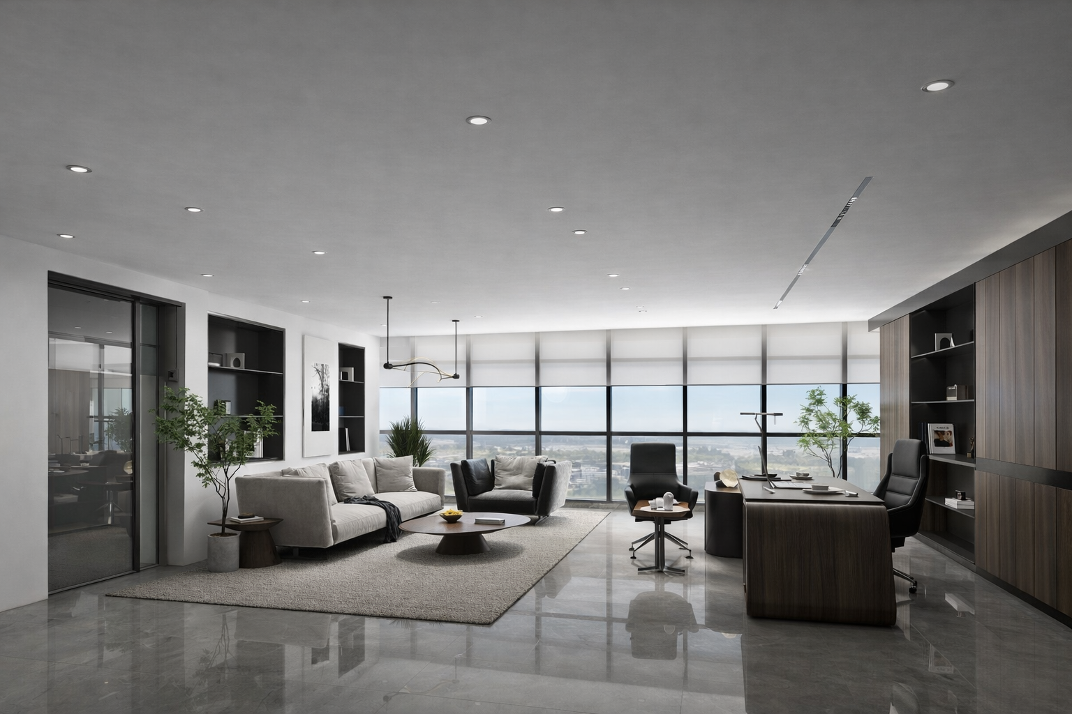 Akustik konfor, ergonomi ve işlevsellik; estetikle dengeli biçimde ele alınarak yüksek bütçeli, uzun ömürlü ve temsil gücü yüksek bir ofis deneyimi hedeflendi.